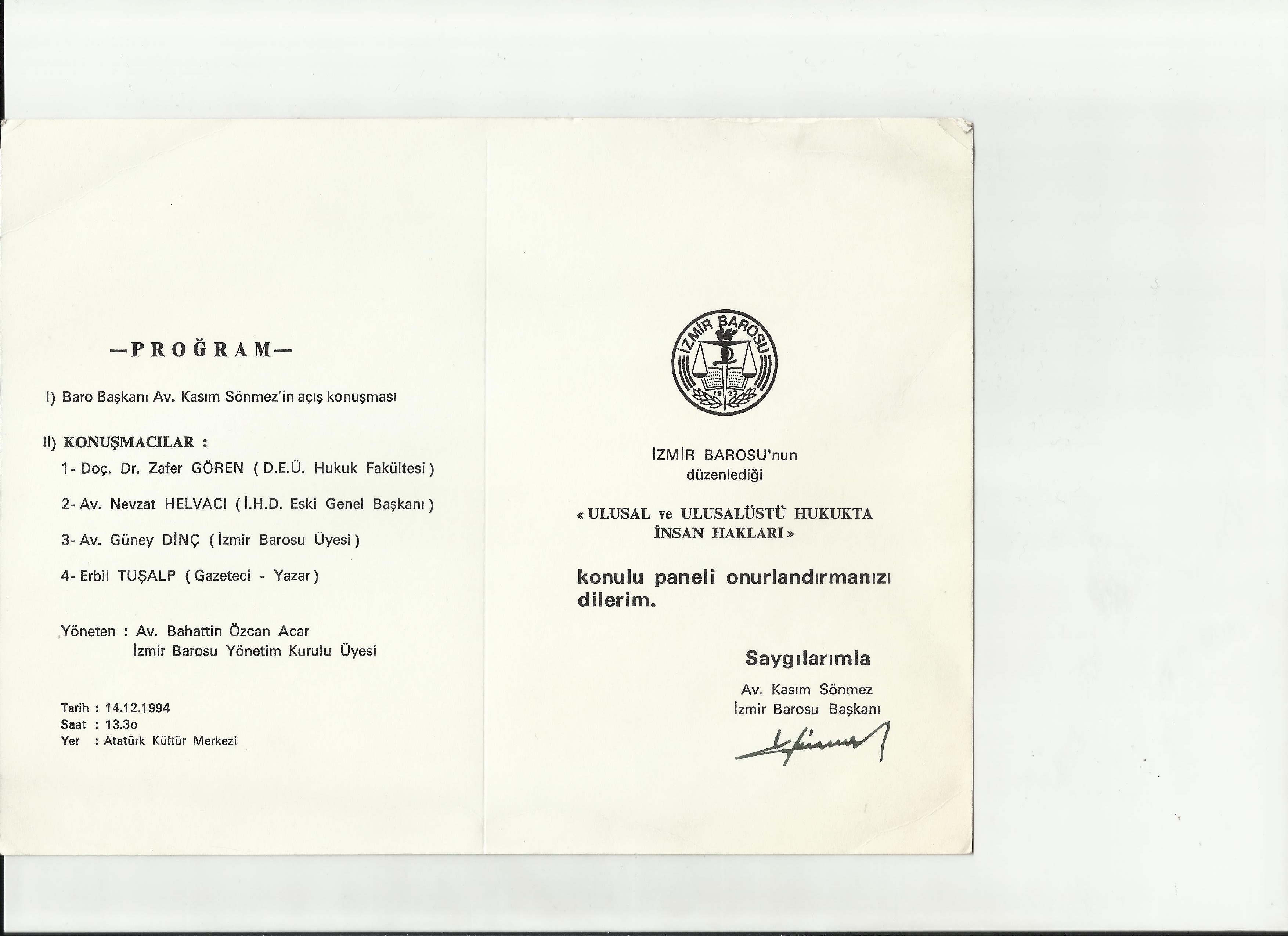 - Faruk Erem-Güney Dinç İzmir Barosu 1986